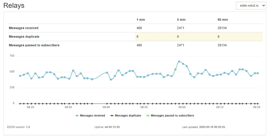 In fact, due to the way that the journal messages and EDDN have been designed, the whole system is fairly light on clients. The EDDN connector for powerplay assistant uses ~ 20 kilobytes per second.